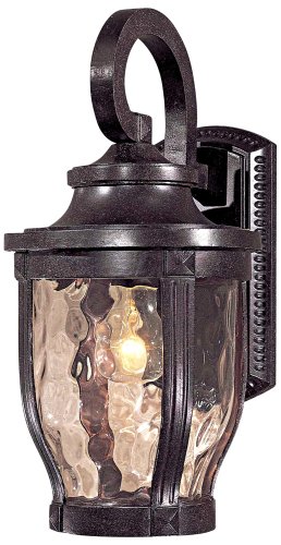 The Minka-Lavery Outdoor 8762-166 is a Medium Wall Mount Light Fixture from the Merrimack Collection. Merrimackis a sturdy cast aluminum family that has features and style that are exhibited in the finest outdoor fixtures. The Corona Bronzeis highlighted by Clear Hammered Glass and is priced to fit every budget. This Lighting Fixture is Underwriters Laboratories (UL) Approved for WET or Damp Locations