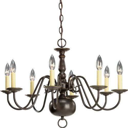 Progress Lighting P4357-20 8-Light Americana Chandelier with Delicate Arms and Decorative Center Column and Candelabra Lamps, Antique Bronze Review